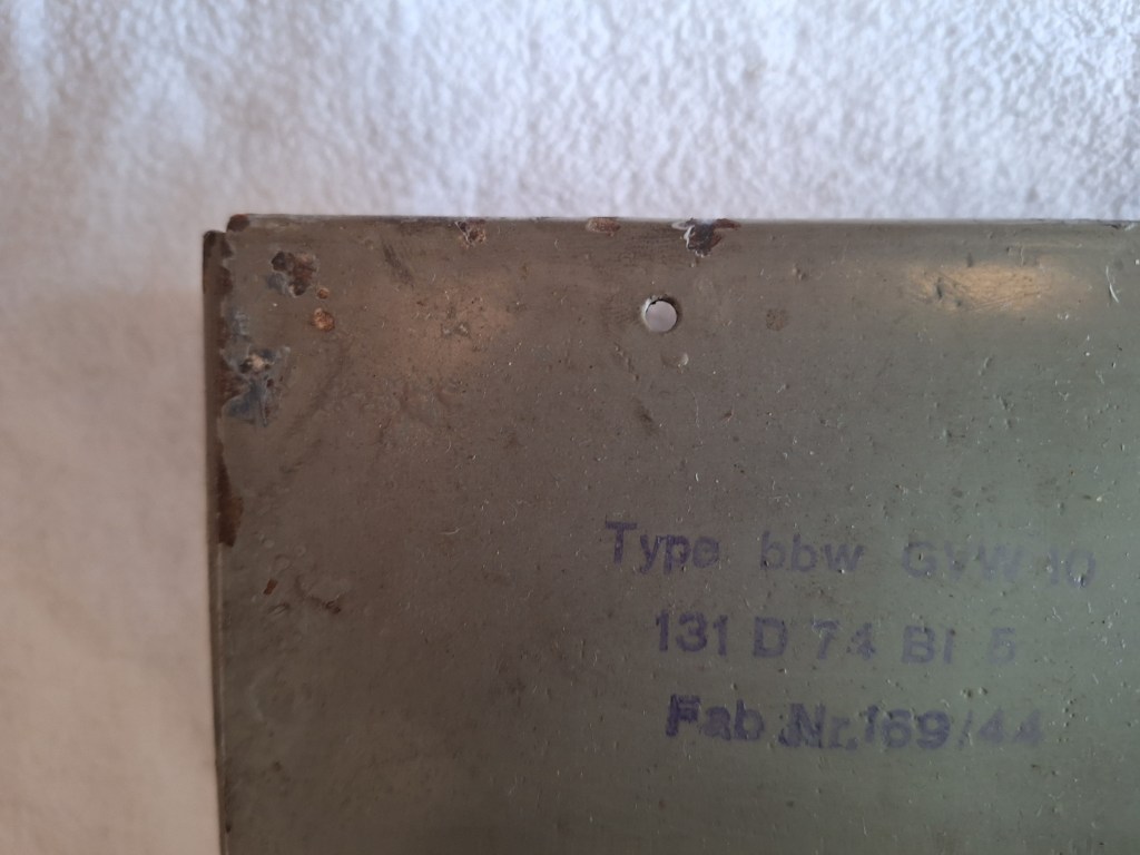 Here the type plate GVW10 the Anforderzeichen is the NA number. in this case NA337202. below that is the year of production 1944 and the serial number. On the bottom the producers name is stamped BBW this is a secret code for ELAC.