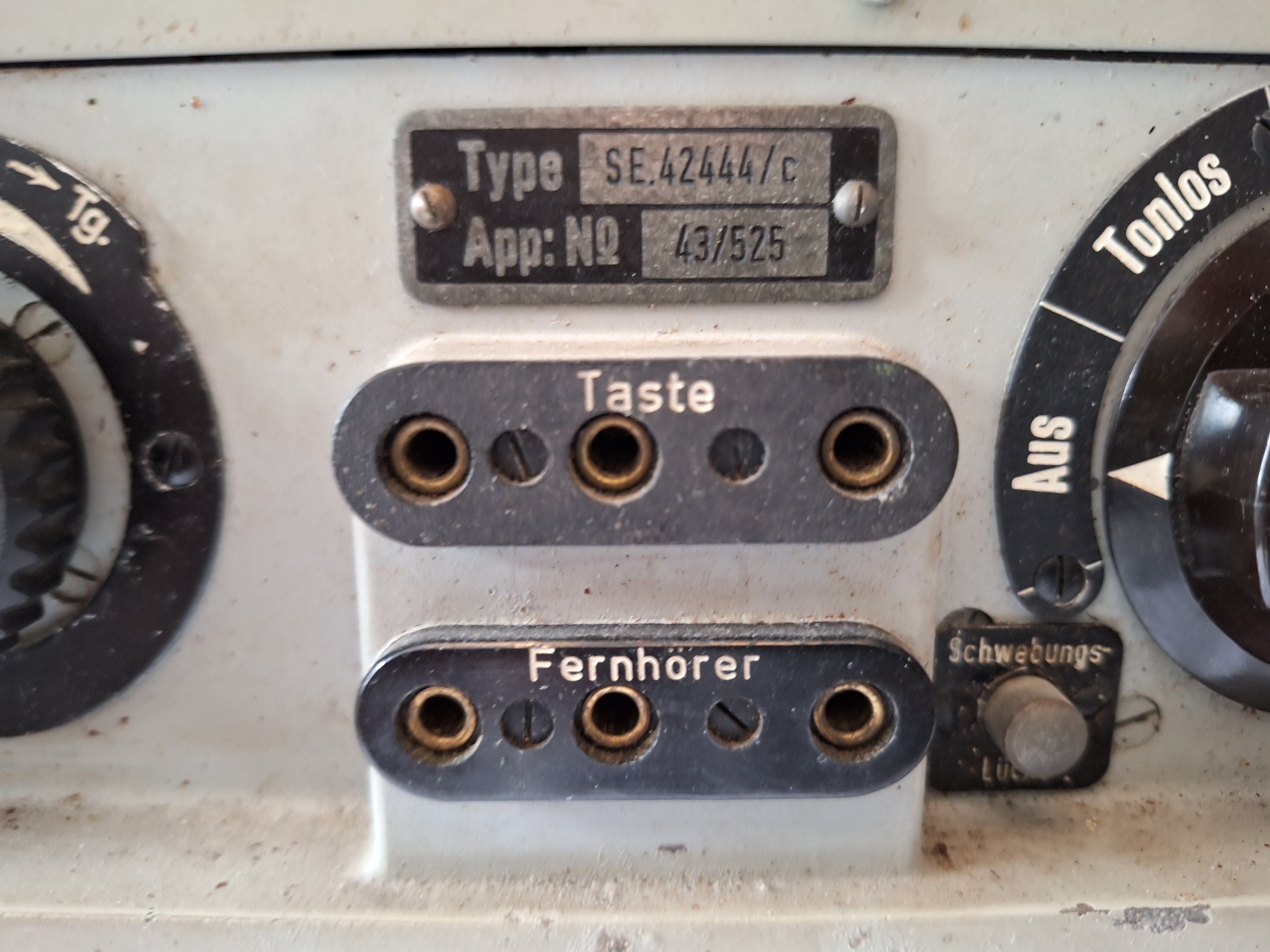 A faint Kriegsmarine mark can be seen between the two connectors. The type plate does not say Lo1 instead its other name SE.42444/c. It was made in 1943.