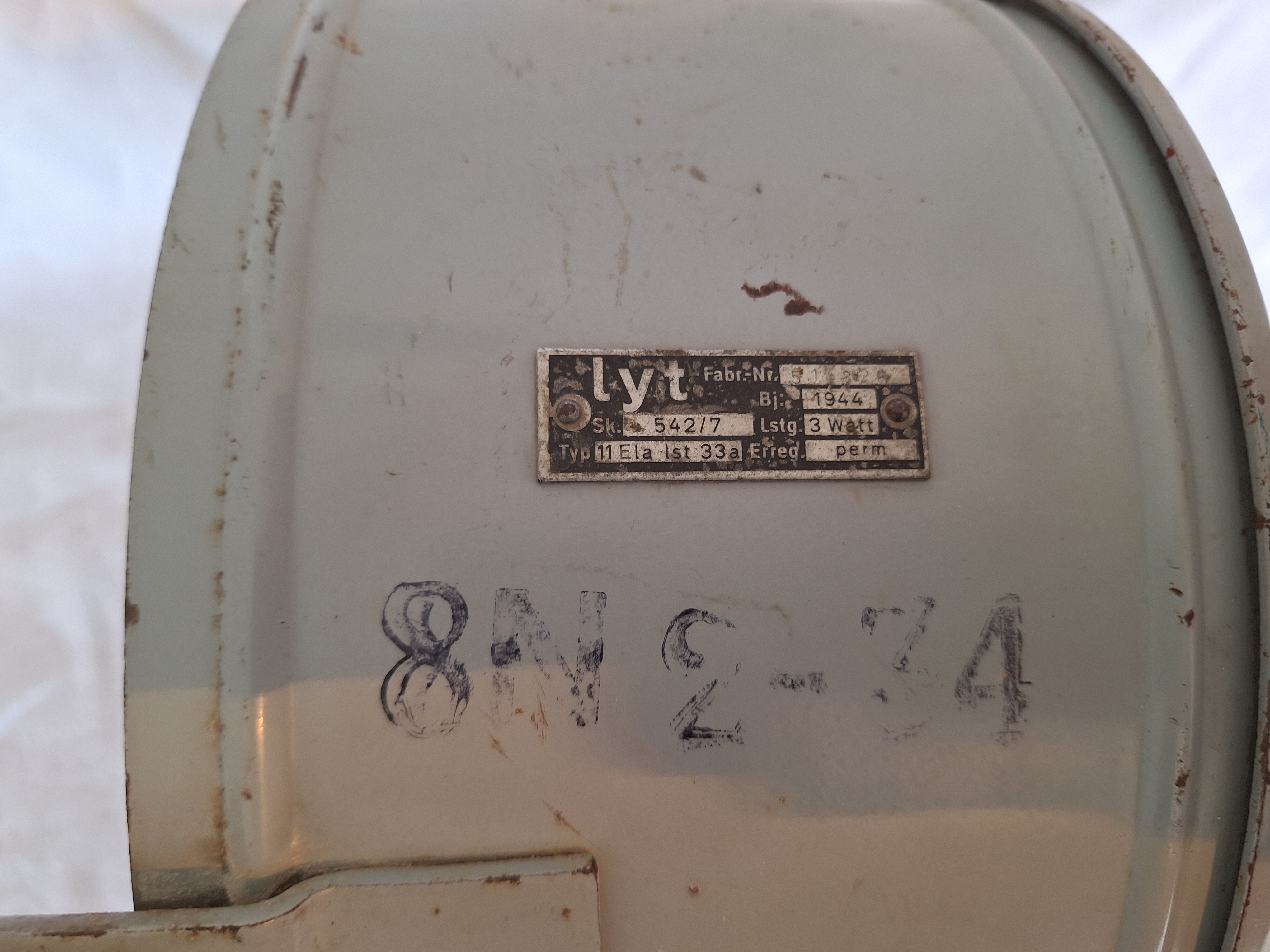 This is the lyt 11 Ela lst 33a a speaker often used on u-boats. This one is sadly very incomplete. It is missing almost all the parts like the speaker, switch-box and other parts. Only the main case is left.