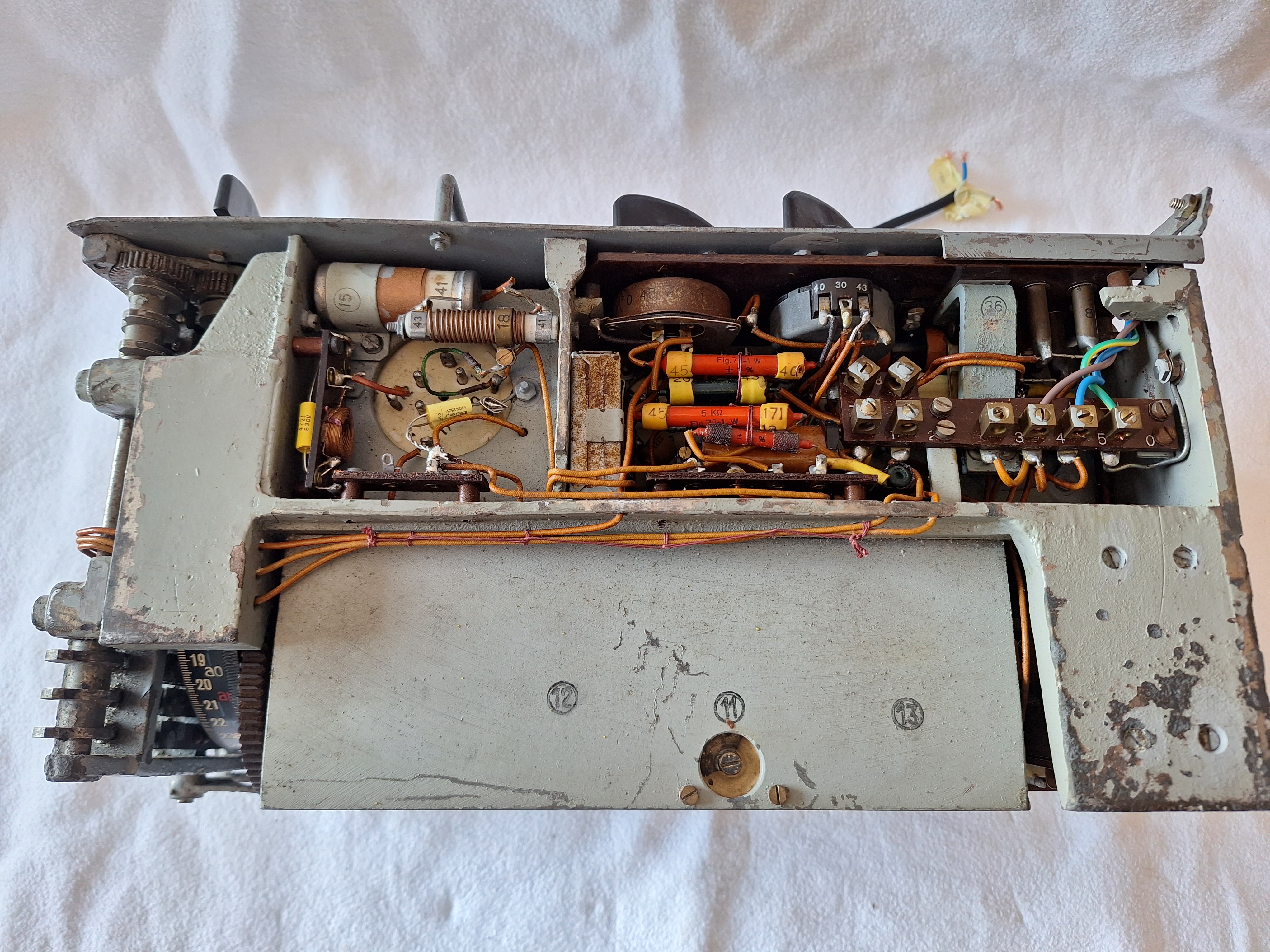 Below them is the Tuning capacitor it is very nicely machined. also visible is the socket for the TE30 Glimmstabilisator used to protect against lightning.